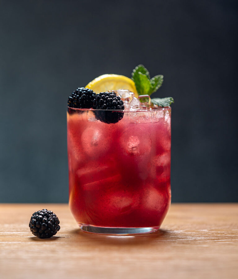 - Filtrer le contenu du shaker dans un verre old-fashioned rempli de glaçons à l'aide d'une passoire à glaçons.