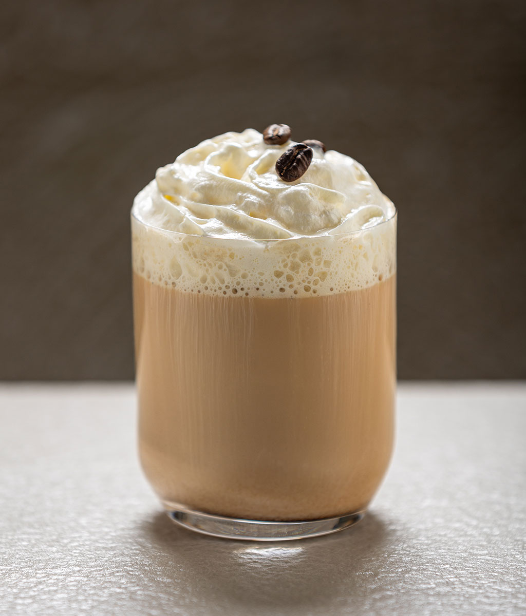 - Décoration : Rim de sucre, crème fouettée et grain de café
