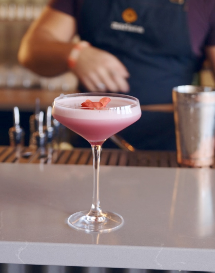 - Double filtrer le cocktail dans une coupe