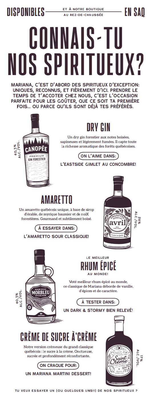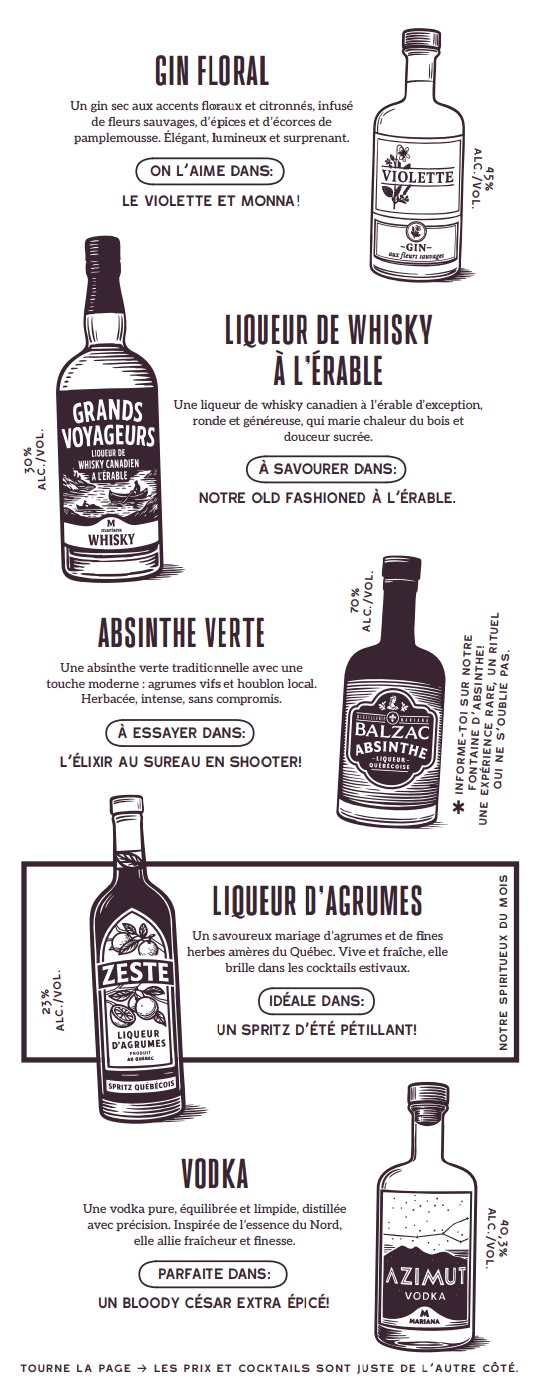 Ici, on goûte, on découvre, on partage. Spiritueux, bières, cocktails et cuisine partagent les mêmes fondations : l’amour du terroir, la créativité et la passion du produit bien fait.